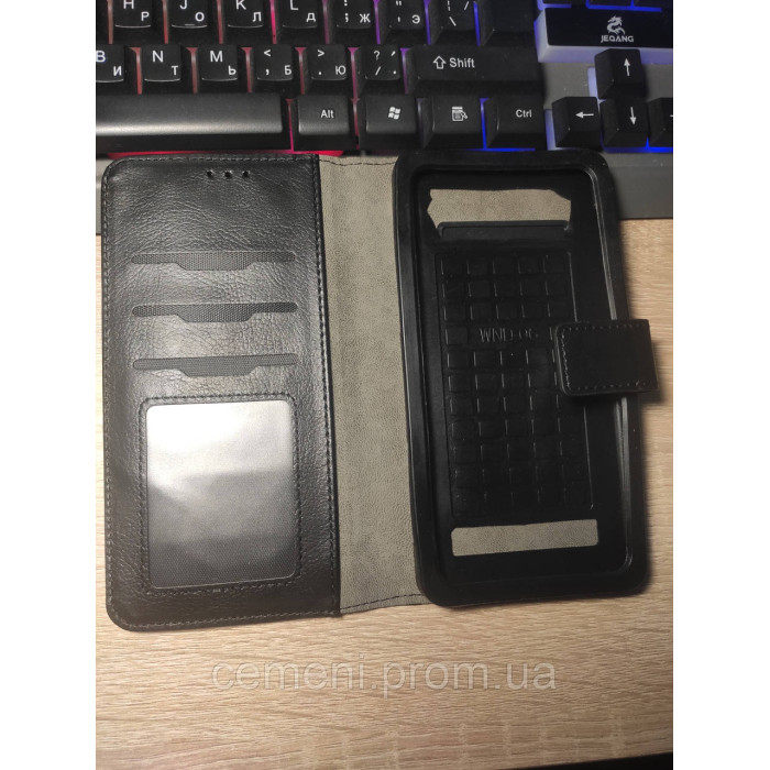 Универсальный чехол-книжка, разработанный для смартфонов с диагональю 5.3–5.8 дюймов. Имеет плотную обложку, мягкую внутреннюю поверхность и аккуратный классический дизайн.