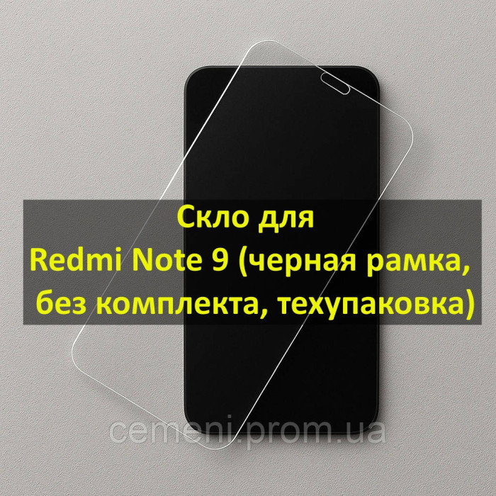 Защитное стекло для Xiaomi Redmi Note 9 с черной рамкой.